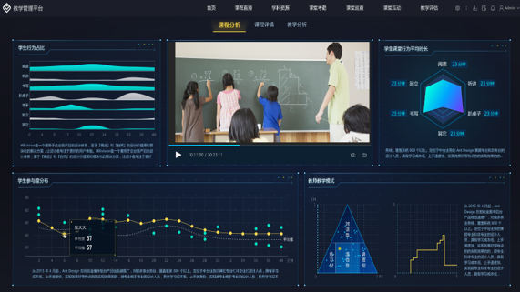 通过人工智能分析的课堂教学数据,课后自动生成课堂报告,协助进行教研和反思,并通过同一节课的不同老师数据报告对比,交流经验,提高教育水平。