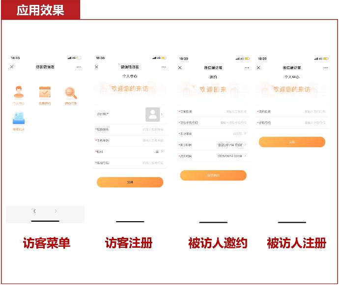 - 支持访客通过微信公众号的访客预约、被动邀约、记录查询