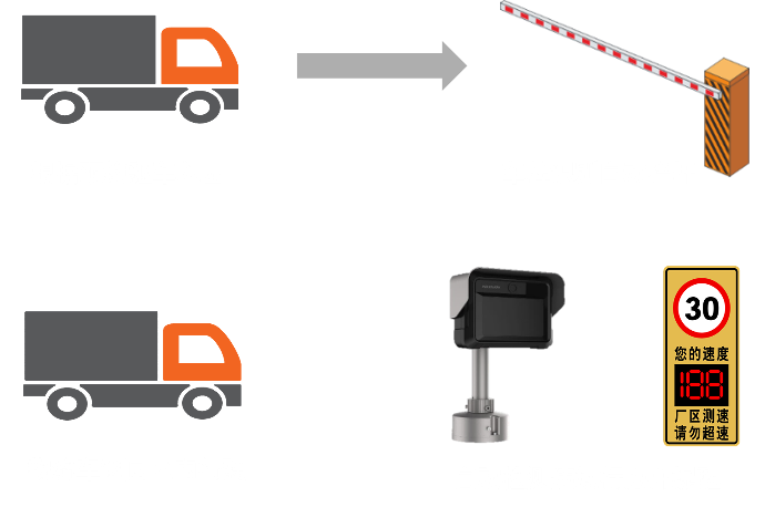 车辆在园区内行驶应用雷视设备检测车辆违规行为并进行提醒,同时系统记录违规事件以便于追溯至司机和承运商。
