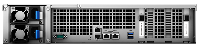 - 通过 2 个 Synology 扩充设备 RX2417sas 可扩充至多达 72 个硬盘