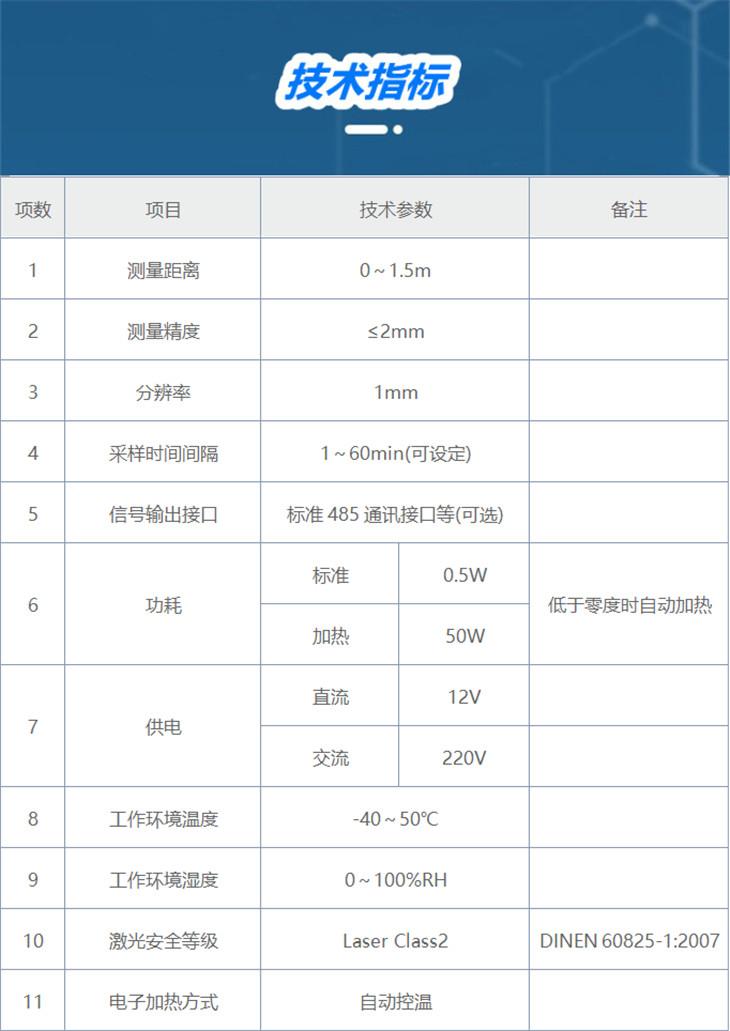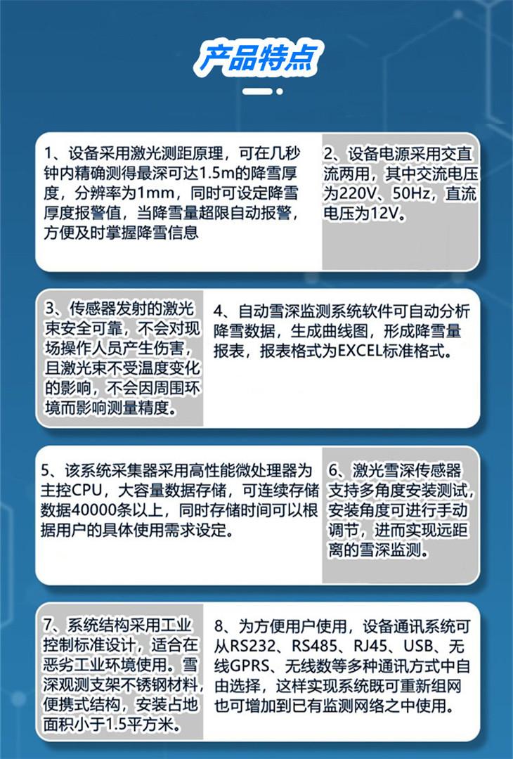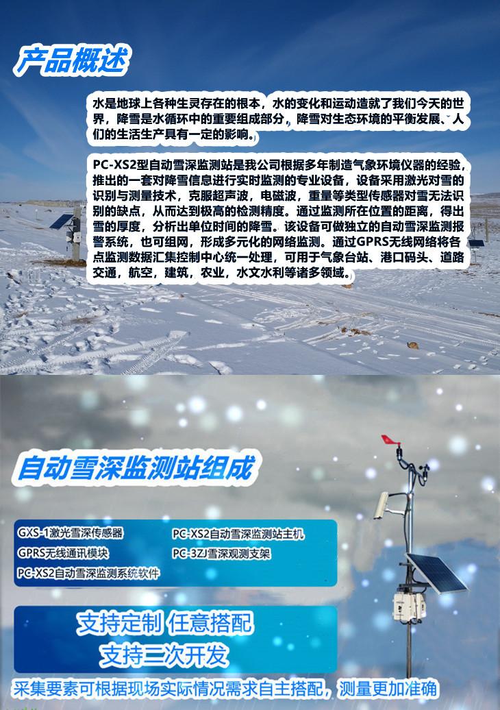 V476-PCXS2型自动雪深监测站是我公司根据多年制造气象环境仪器的经验,推出的一套对降雪信息进行实时监测的专业设备,设备采用激光对雪的识别与测量技术,克服超声波,电磁波,重量等类型传感器对雪无法识别的缺点,从而达到极高的检测精度。